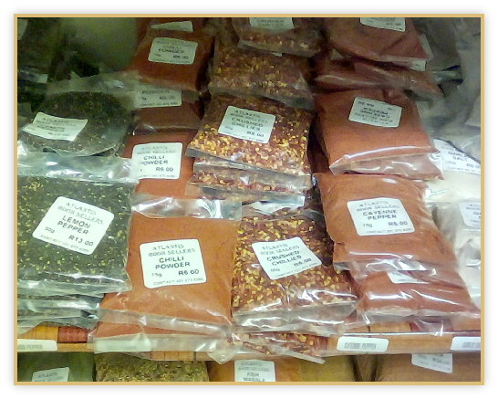 Freshly packed Chili Powder, Cayenne Pepper, Crushed Chilies and Lemon Pepper.